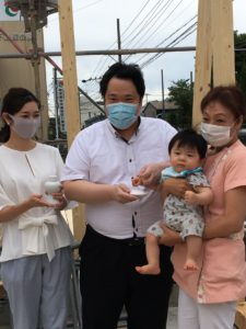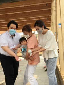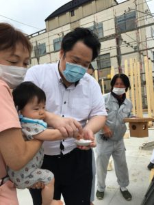 四隅とかあちこちにお酒と塩をまいてお清めをします。地鎮祭に似てますね。